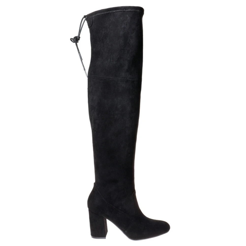 This tall stylish boot features a suede upper and 3 inch heel. Two inside zippers and a back tie that can be tightened to your liking. Style them with a dress or skirt, or skinny jeans.