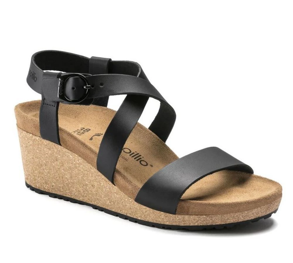The Sibyl is a strappy wedge that will keep you comfy and stylish all day long. Features a lightweight footbed. A circular buckle adds a feminine, elegant touch that is sure to dress up any outfit. Upper made from high-quality, smooth leather