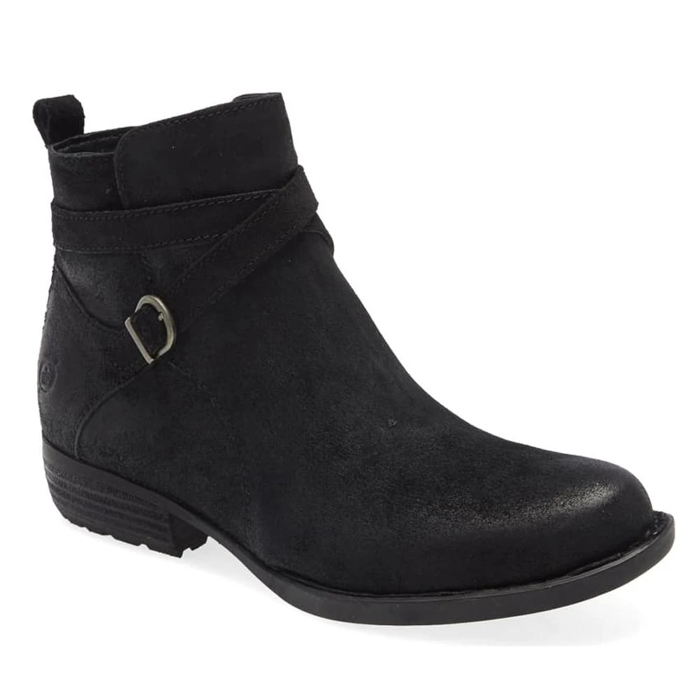 This classic suede boot is complete with versatility, a cushioned removable footbed, a low 1.5-inch walking heel, and slim moto-inspired straps. Made with hand-sewn Opanka construction, the upper is fastened to the outsole with an extended flange joined by stitch for long-lasting durability.