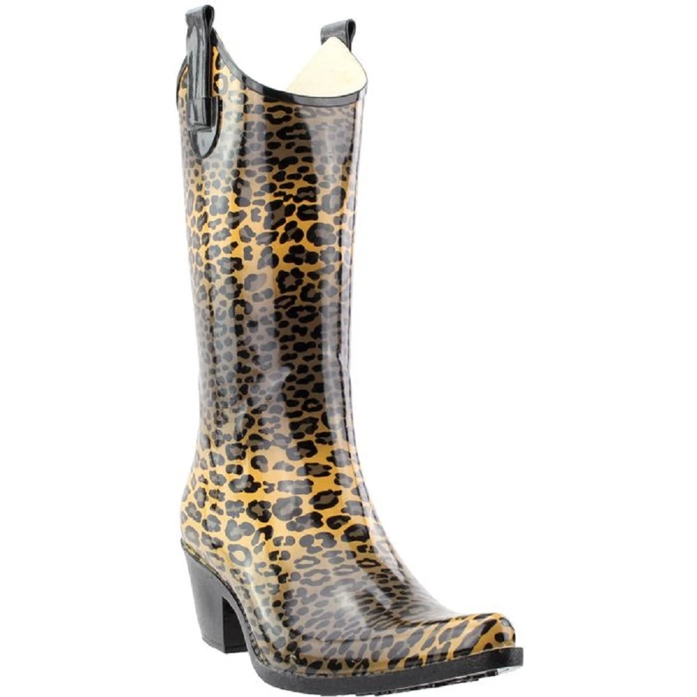 The Corkys Rodeo is a stylish western style rain boot. It is made with synthetic rubber that is waterproof. This boot is a hybrid of functionality and style featuring a pointed toe and elevated heel that will keep you dancing rain or shine.
