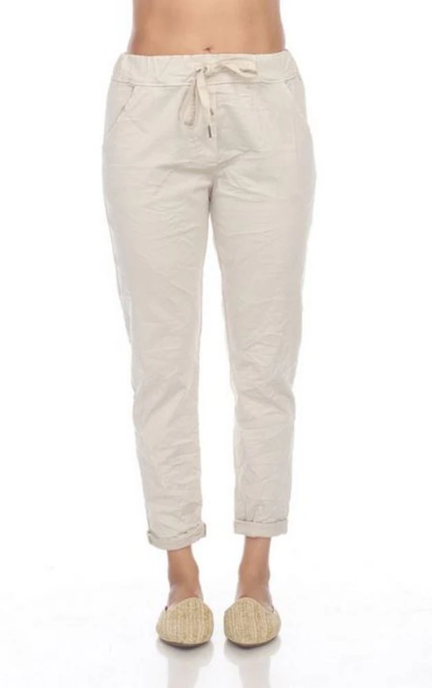 These simple and comfy capris features a cuffed hem and four pocket design. A waistband with a front drawstring that allows for you to tighten the pants to the perfect fit for you. Lightweight for the spring and pairs well with a casual top and sneakers.