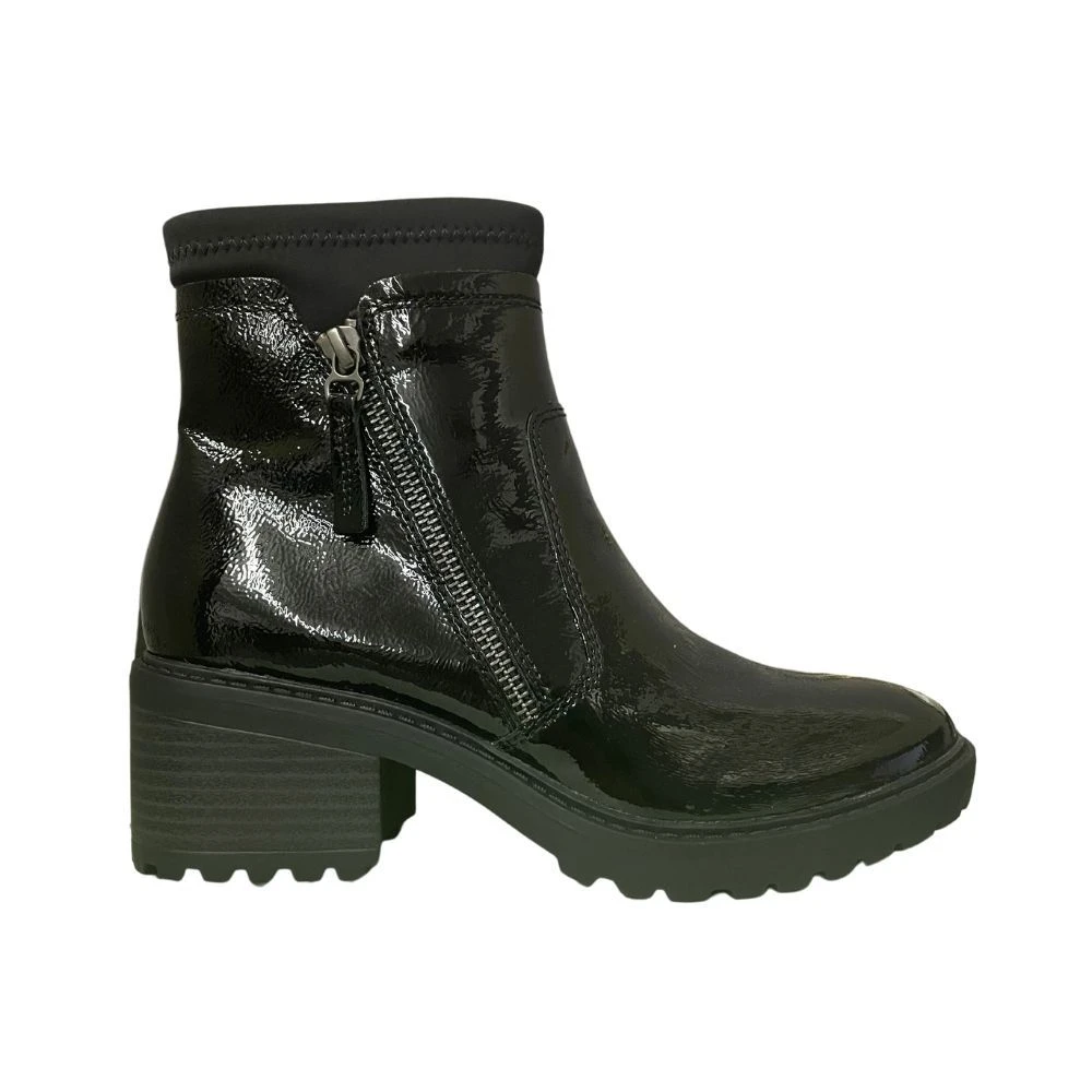 This stylish boot features a waterproof patent leather upper and Vizalo Suede interior. Waterproof interior lining/elastic gore. Two side zippers for easy on and off and a 2 inch heel.