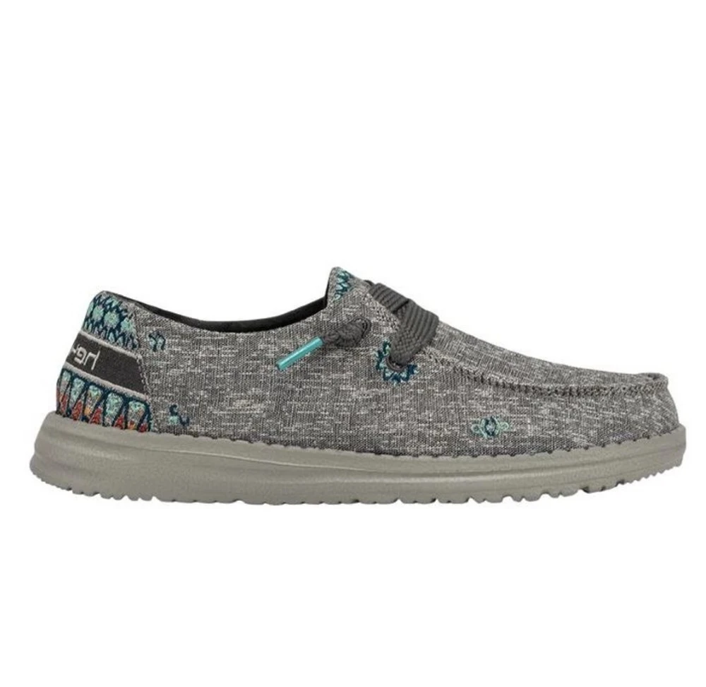 A breathable, chambray cotton moc for any-day wear. Features an elastic lacing system for easy on and off. UltraLIGHT EVA outsole for comfort and stitched flowers for added detail.