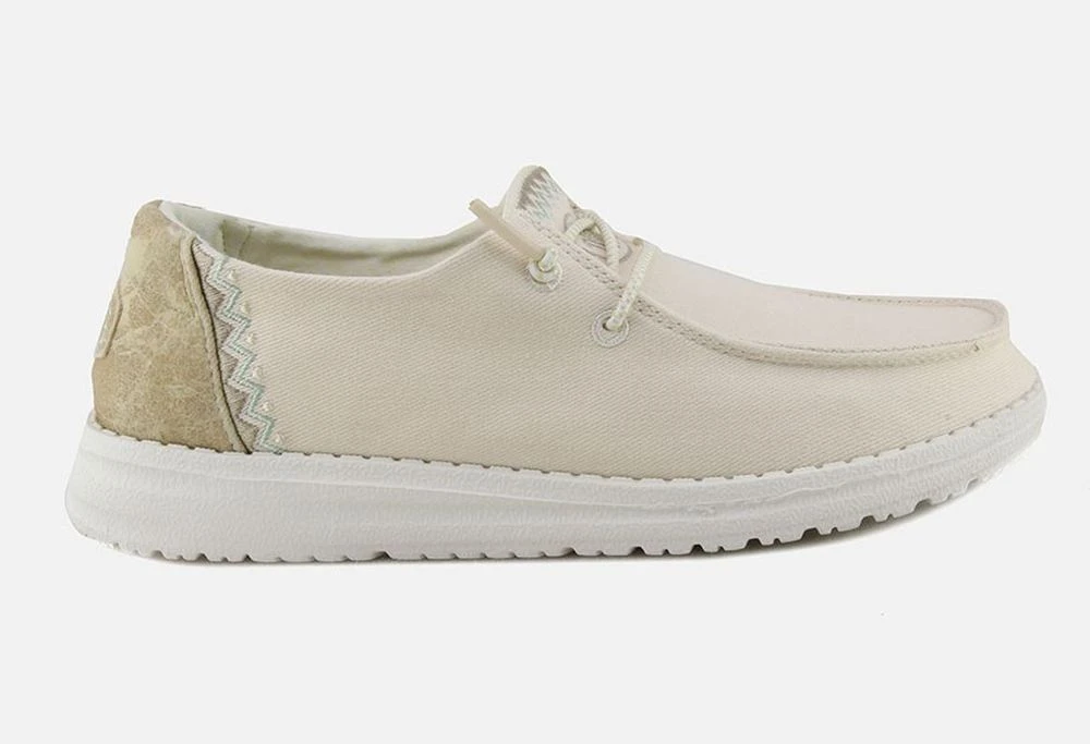 The Wendy Tempe features a no-tie design and natural wool upper. Perfect for regulating temperature of your feet the natural wool fibers provide all day breathability. Padded footbed and super lightweight outsole