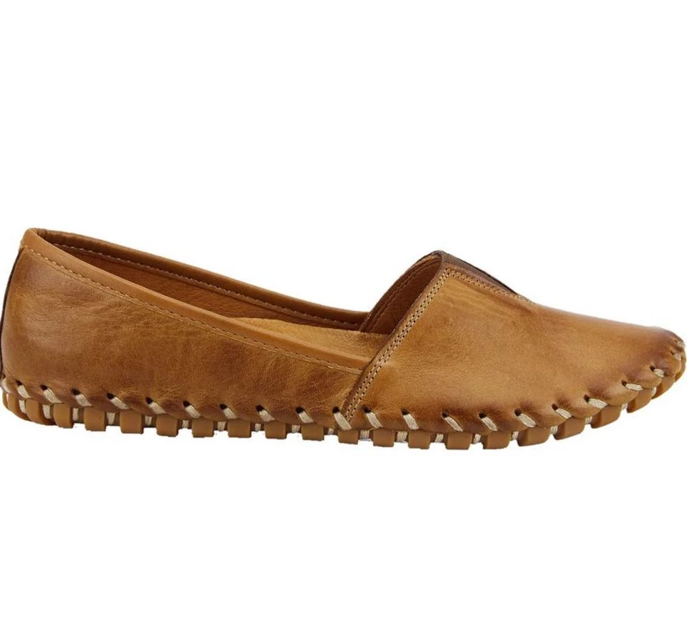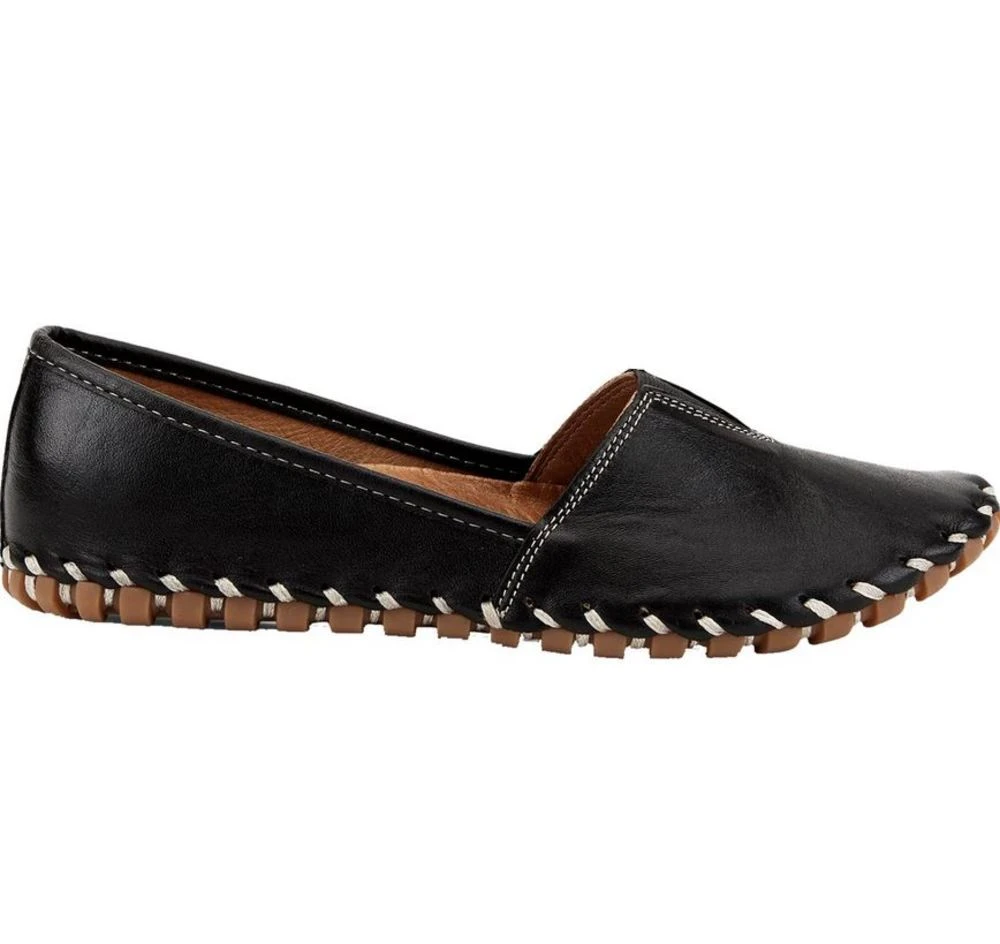 Style this leather slip-ons up or down. Features whipstitching detail and arch support insoles. Leather upper, lining, and insole. Rubber outsole that helps with traction and flexible sole that will keep your feet comfortable all day long. Heel Height, 1/2`.