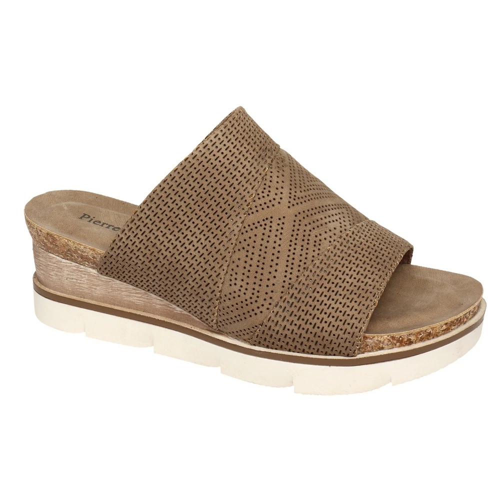 Enjoy a nice dinner by the sea in this adorable beachy Lisle 6 slip-on sandal. It has a cushioned cork footbed, single textured banded faux suede upper, and 2-inch raised heel.