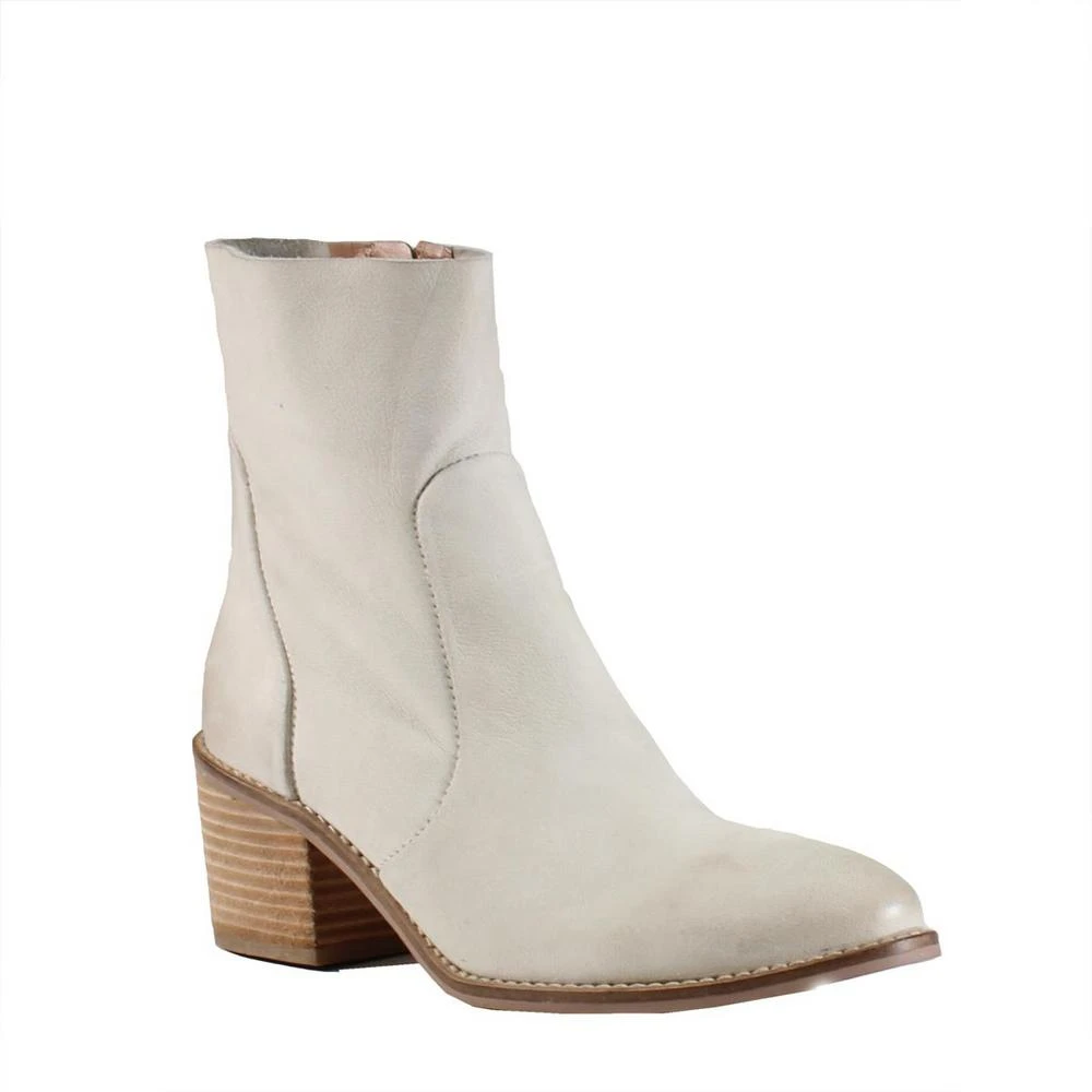 A sleek and chic boot featuring a leather upper and topstitching along the vamp/counter. Inside zipper and closed almond toe. A heel height of 2.5 inches and slightly worn look that can be paired with a dress or jeans.