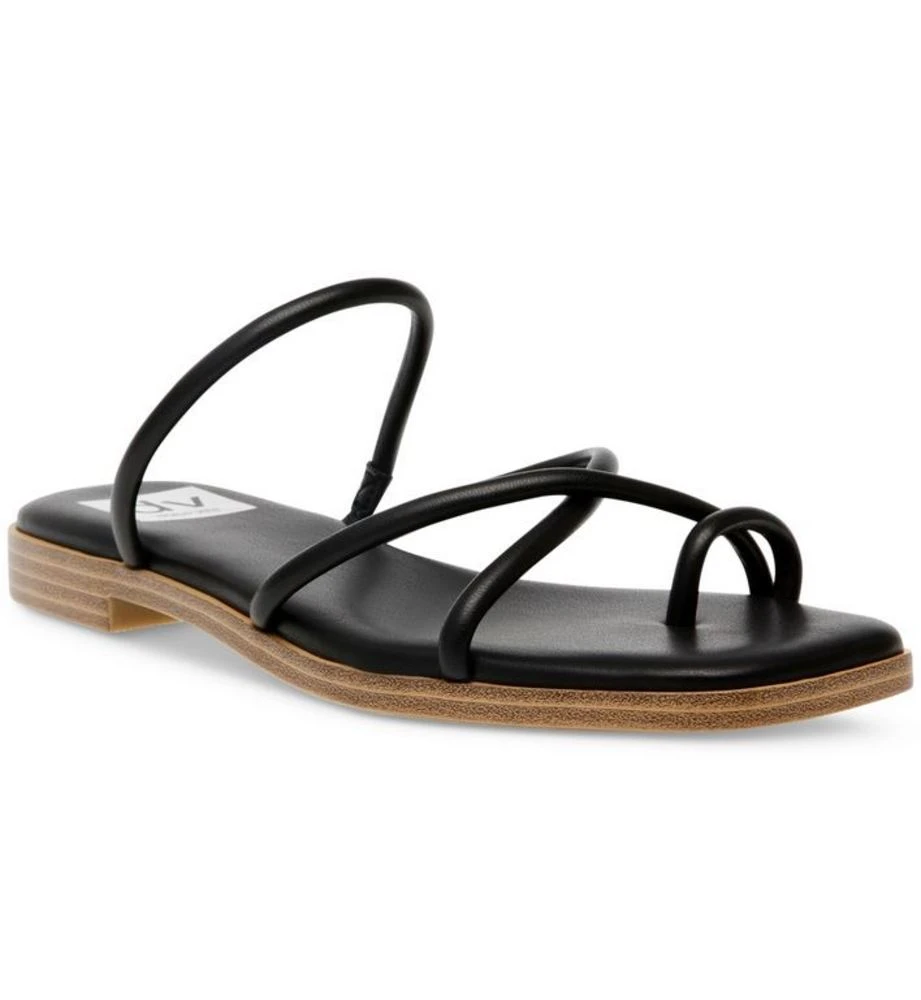 This strappy slip on features a comfortable padded footbed and toe strap design. Criss cross straps and a stacked wood outsole. Pair them with a dress or jeans and a blouse.