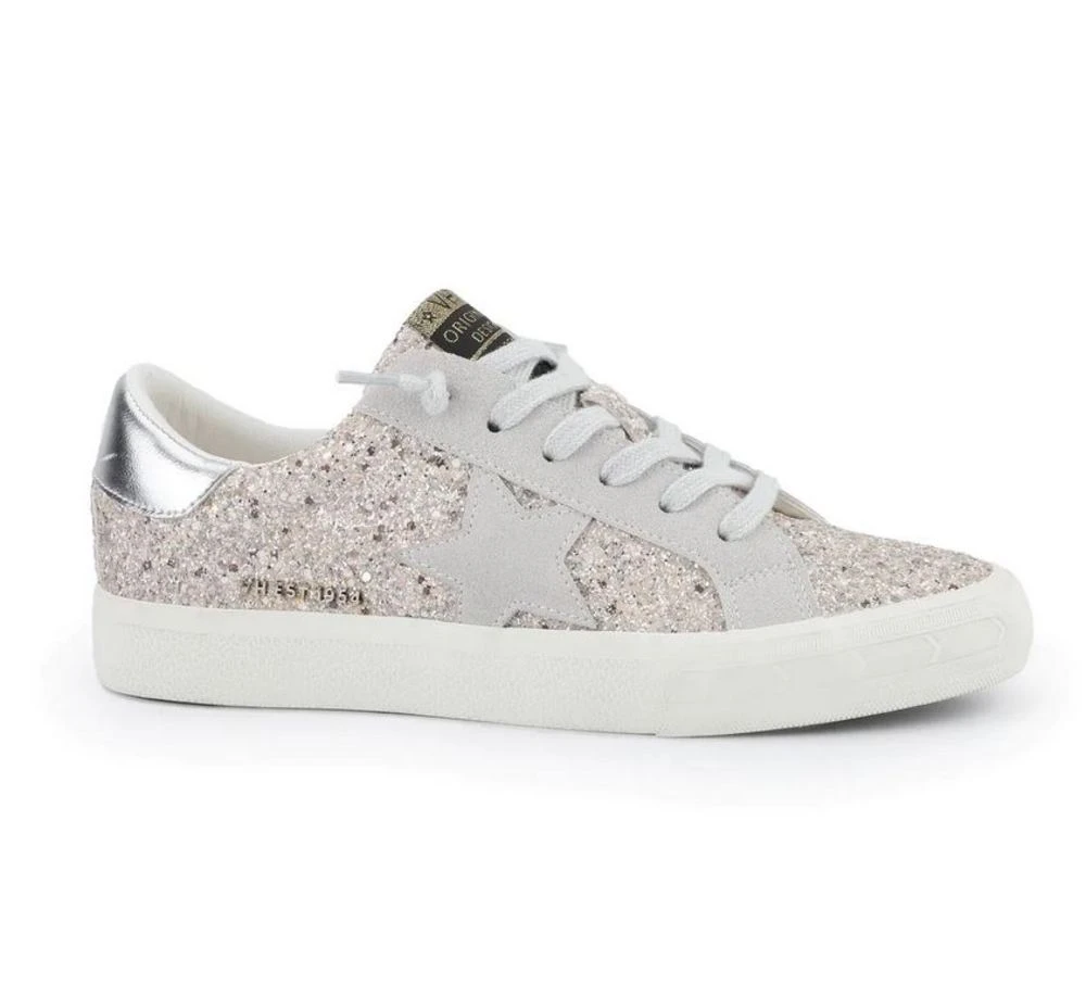 The Palmer features a leather and suede upper with glitter detail. No-tie lace closure and star embellishment. An easy slip=on style will have you out the door in no time. Pair with a dress or shorts.