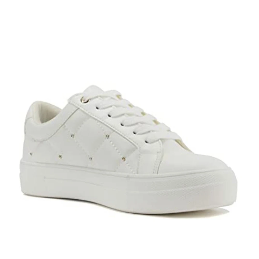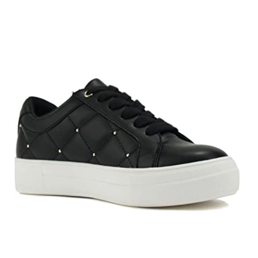 This trendy street sneaker features a diamond quilted upper, padded cushion sock, and low top look. Style them with a cute band tee and jean jacket for a chic ensemble.