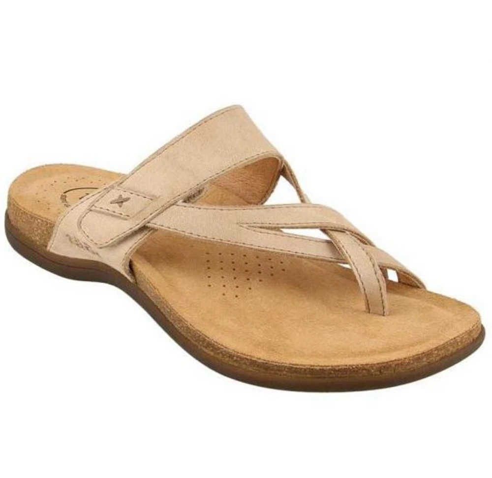 The perfect sandal for everyday wear. features a toe loop and strappy upper design. An adjustable hook and loop closure allows for the perfect fit and the lightweight cork-latex midsoles are topped with soft padding and a luxurious suede lining. Super flexible outsoles and a durable heel. 1/2` heel height.