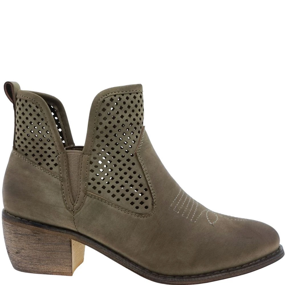Get your country western on in these streamlined booties. Features perforations near the ankle, a v-shaped cutout, and a tapered block heel. Pair them with jeans and a cute top.