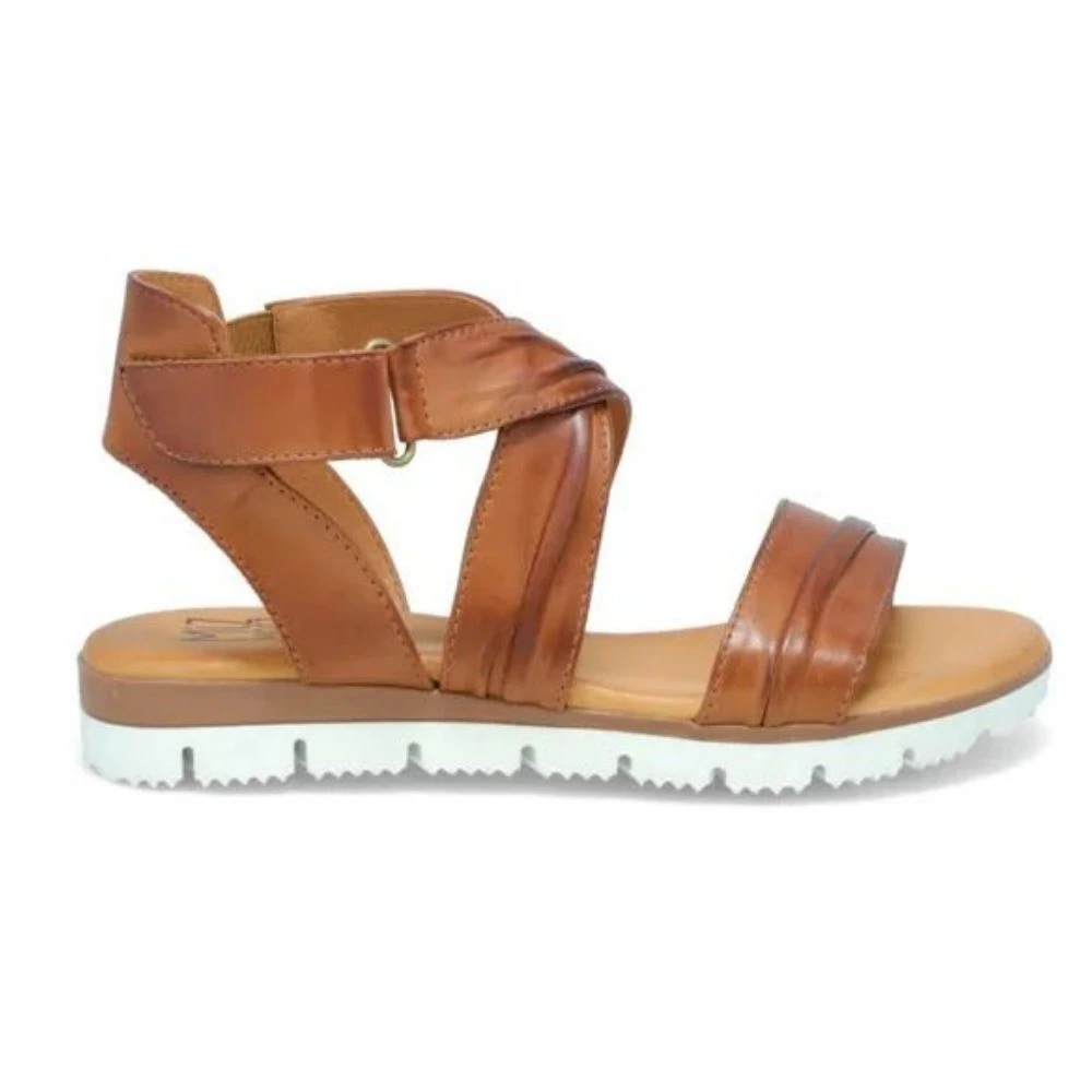 The Sarah is a trek-inspired sandal for any day wear. Features a leather upper and lining. Ruched leather straps paired with a 0.5` platform and 1` heel height. A cushioned footbed and adjustable hook and loop closure ensures a secure fit.