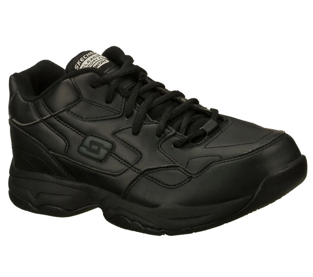 The SKECHERS Work Relaxed Fit®: Felton – Albie SR shoe will make every shift you work a little bit more safe and comfortable. This lace up casual comfort work slip resistant sneaker has a smooth faux leather upper with stitching and overlay accents. The Memory Foam insole will make your feet say, `Thank You.`