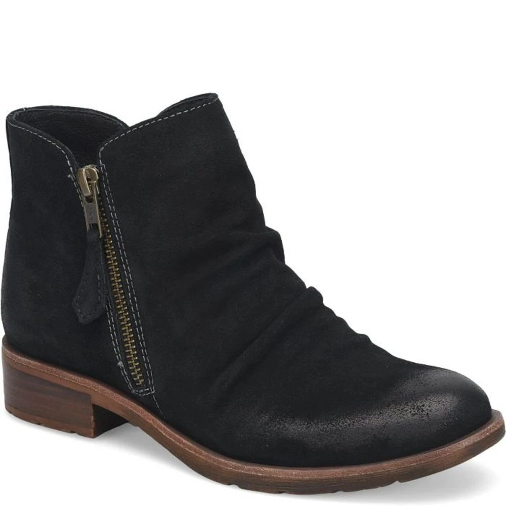 Two-toned leathers and soft suedes don`t scream weather-friendly but the Bassetts are. Waterproof-treated leathers and suedes will keep your feet dry all day long. Features zipper with matching leather pull, heel/arch support and a cushioned footbed at ball of foot. Lightweight and nonslip TPR outsole with a short heel height of 1 1/2 inches.