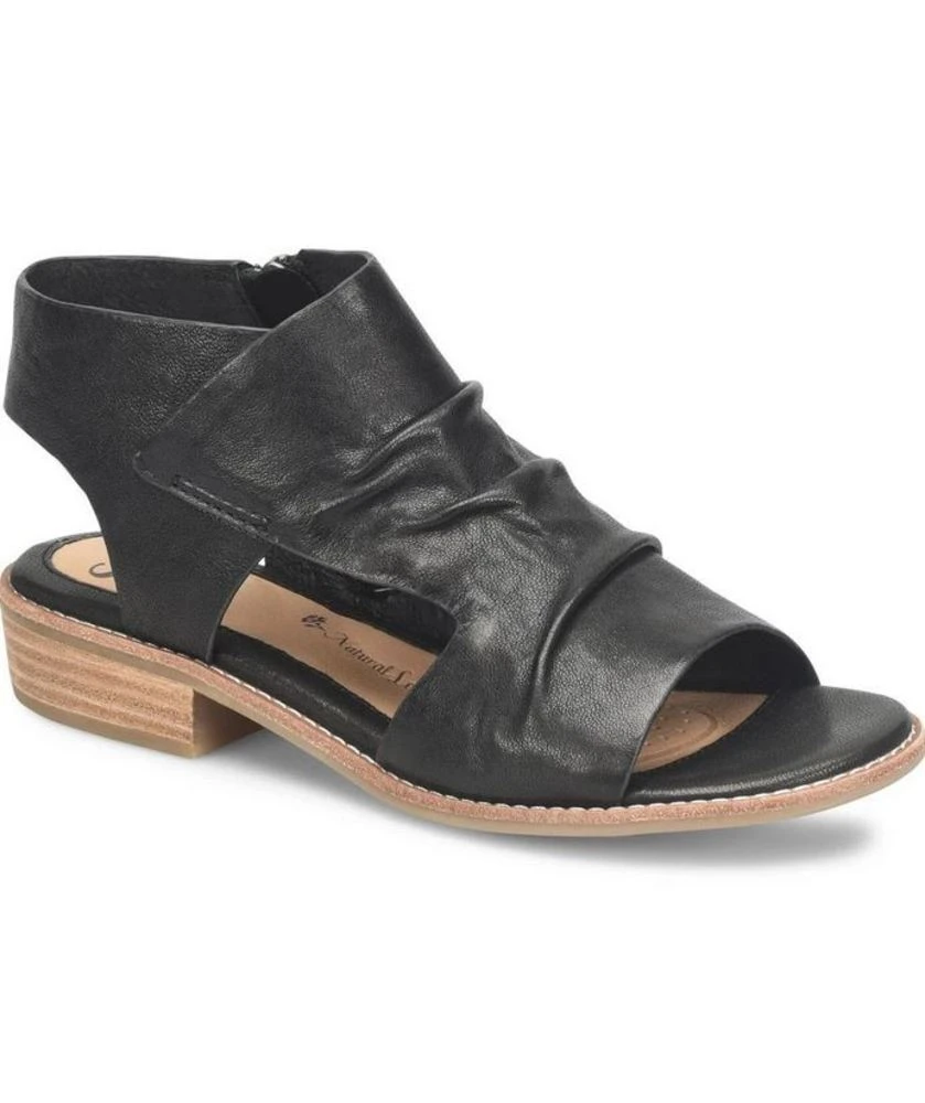 The Naoma features a leather upper and side zipper for easy on and off. A soft cushioned footbed and open toe design for the Spring. Leather stacked 1 1/4 heel and lightweight/flexible outsole.