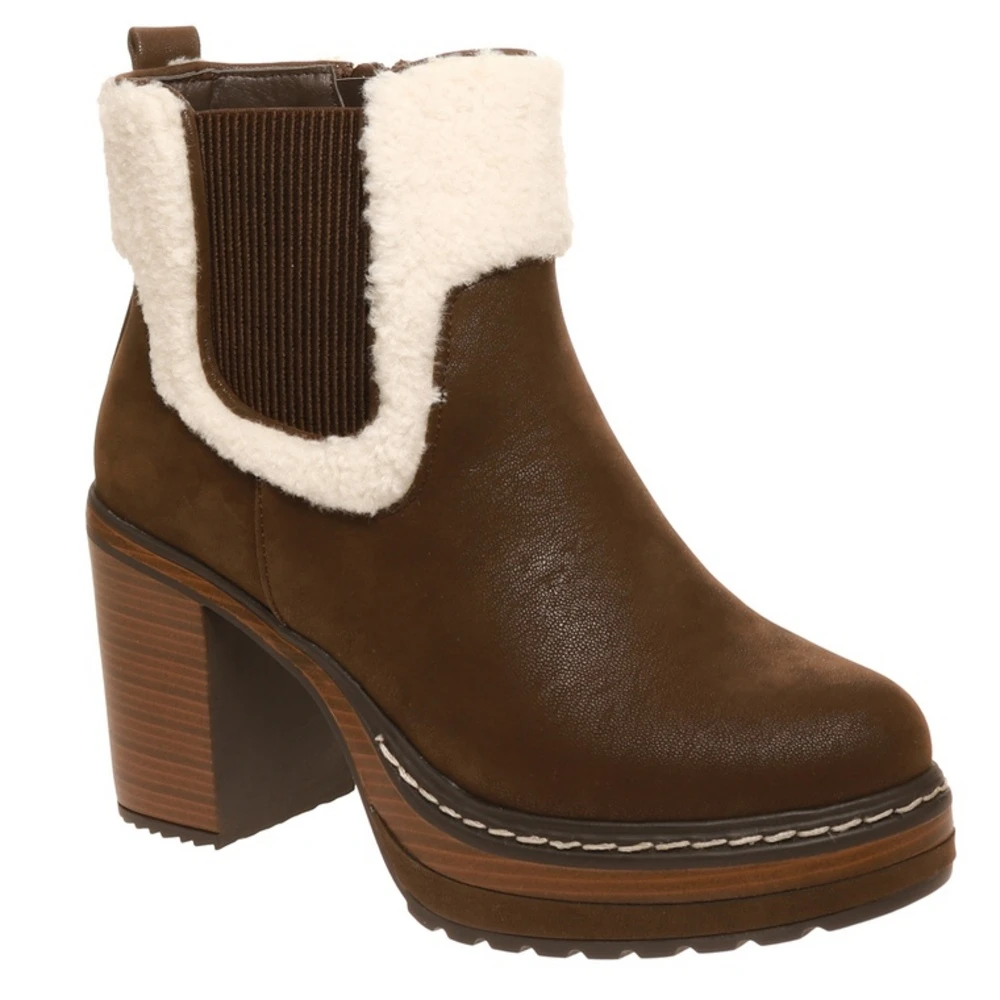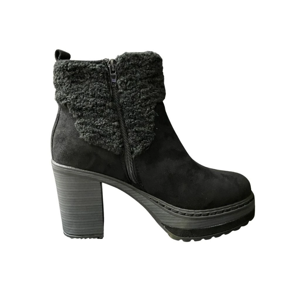 Stylish and winter-ready, these cute boots feature adorable fleece detail on the ankle. A side zipper allows for easy on and off. A 3 inch heel and a 1 inch platform give you the perfect height. Pair with jeans and a cardigan.