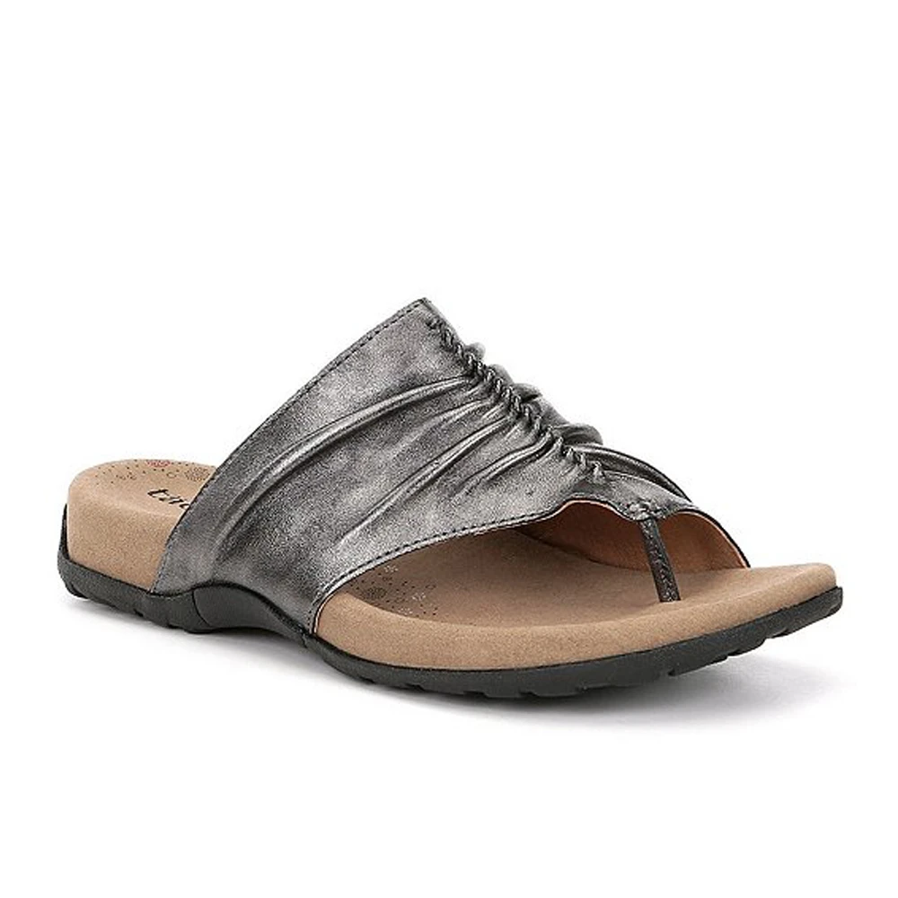 From Taos, the Gift 2 is a great everyday sandal from spring and summer. It features a scrunched leather upper, leather lining, and rubber outsole with arch support.