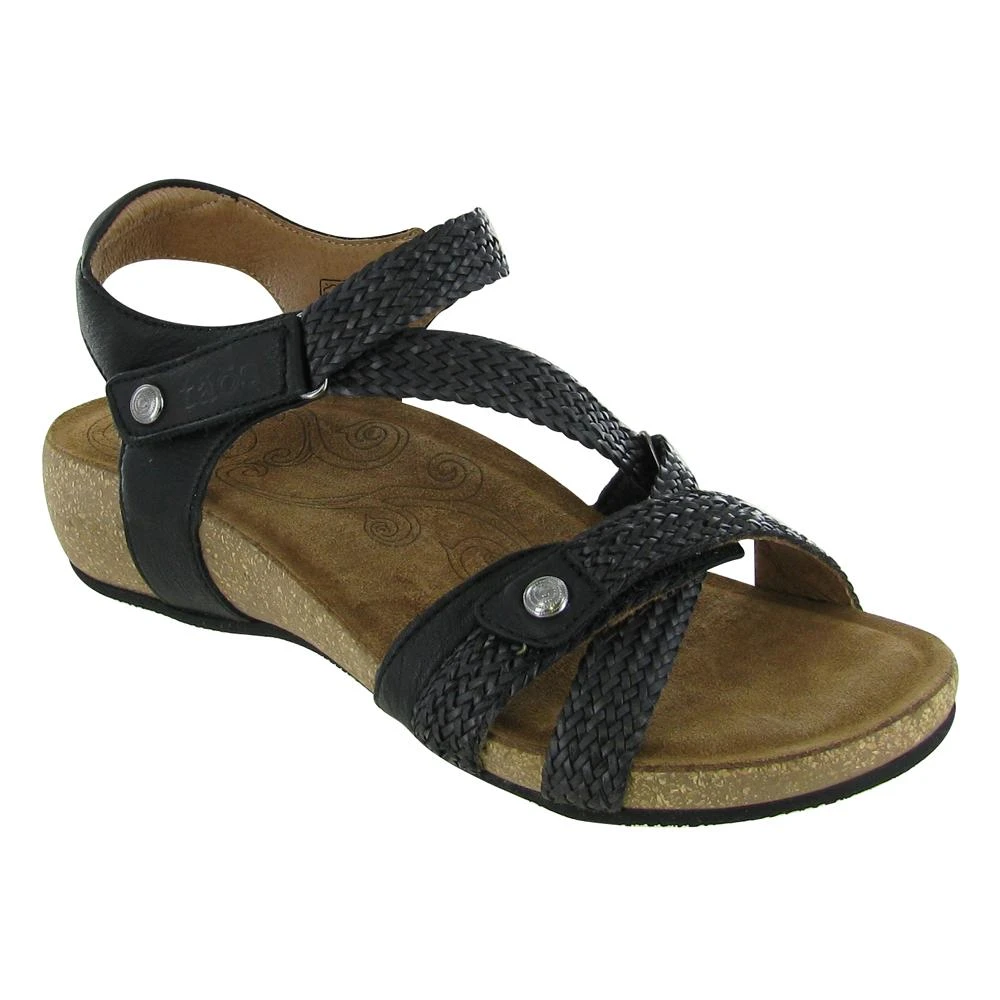 A super comfortable sandal from Taos, its woven strap designs are a great casual look for this Spring and Summer. It features two grip-straps for an custom adjustable fit, contoured cork footbed, and stylish detailing that makes this shoe, Trulie magnificent.