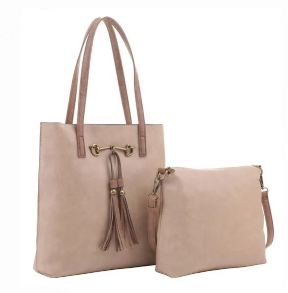 The Jane 2 in 1 tote is one of our best sellers. The beautiful vegan leather is accented with a wonderful tassel and comes with an inner cross body bag complete with its own cross body strap.