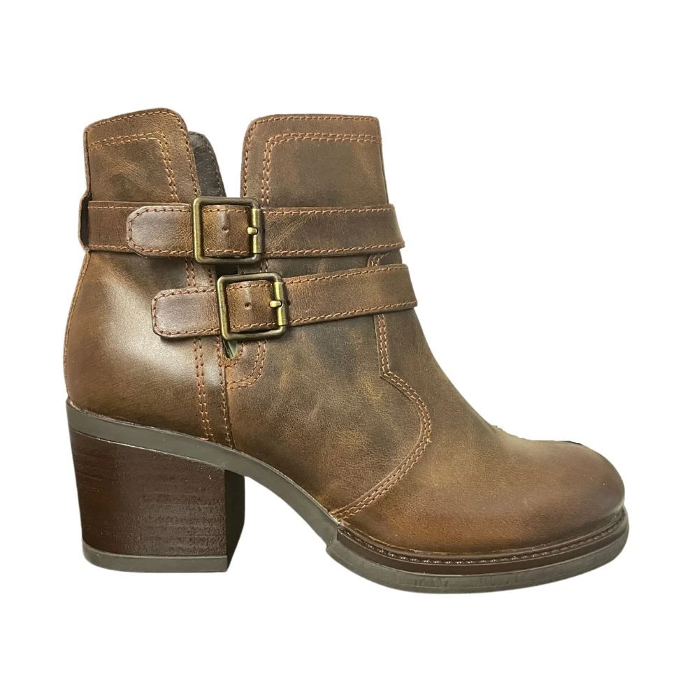 The Welsh is sure to be your new favorite fall boot. Features a double buckle design and inner zipper of easy on and off. Leather upper and padded footbed for comfort. 2 inch heel and rounded toe.